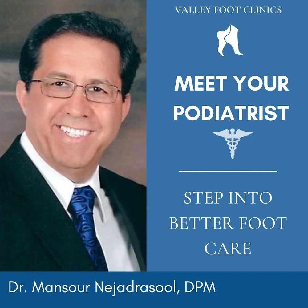 At Valley Foot Clinics, we pride ourselves on our ability to provide you with excellent and high quality foot and ankle care services. Every patient is different, and we personalize our patient care on an individual basis, in order to accommodate the patient in the best way possible. In addition to diagnosing and treating a wide variety of foot and ankle cases, Dr. Nejadrasool offers surgical procedures outside of our clinics for more severe cases and requirements. Valley Foot Clinics is an in-network provider to most insurance companies.